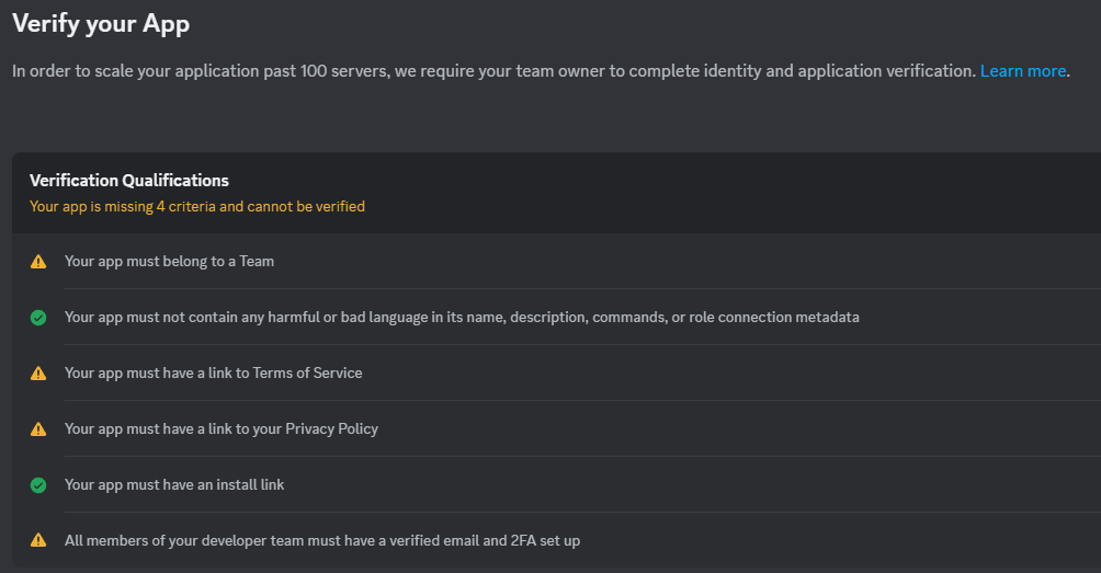 Important Note: Until an activity has gone through a verification process, it can't be installed in servers with more than 25 users. You can make a private personal server for development if needed.