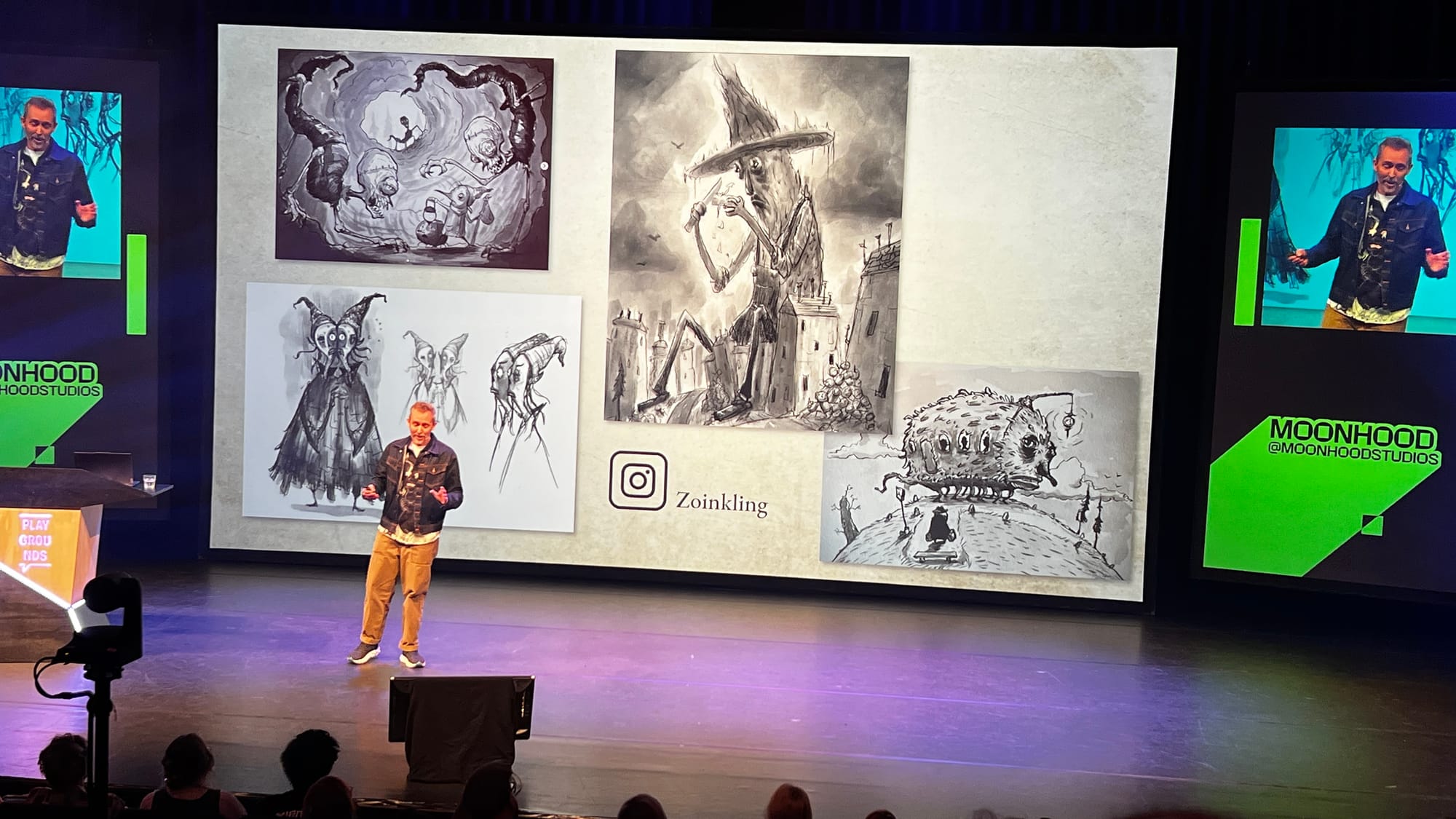 Day 2 was packed with some absolutely phenomenal talks, starting with back to back talks from the founders at Moonhood Studio. I loved seeing their process of creating physically sculpted models that were then scanned and brought into the game for rigging and animation. I'm adding "The Midnight Walk" to my list of must play games now.