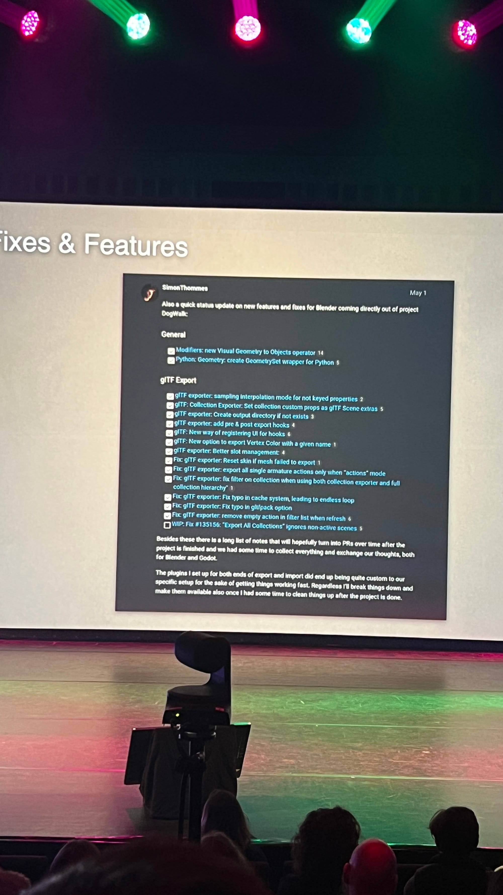And finally Blender Studios gave a talk about their first open game project. Blender studios is known for producing an animated short once a year, but in 2025 they decided to also put out a small game called "Dog Walk". My favourite bit of the talk was the sharing about their workflow and pipeline for working between Blender and Godot. They utilised the glTF file format as a transport for art and data, which resonated with me as I'm doing something quite similar, though not ad advanced, with my Rollbound Project.